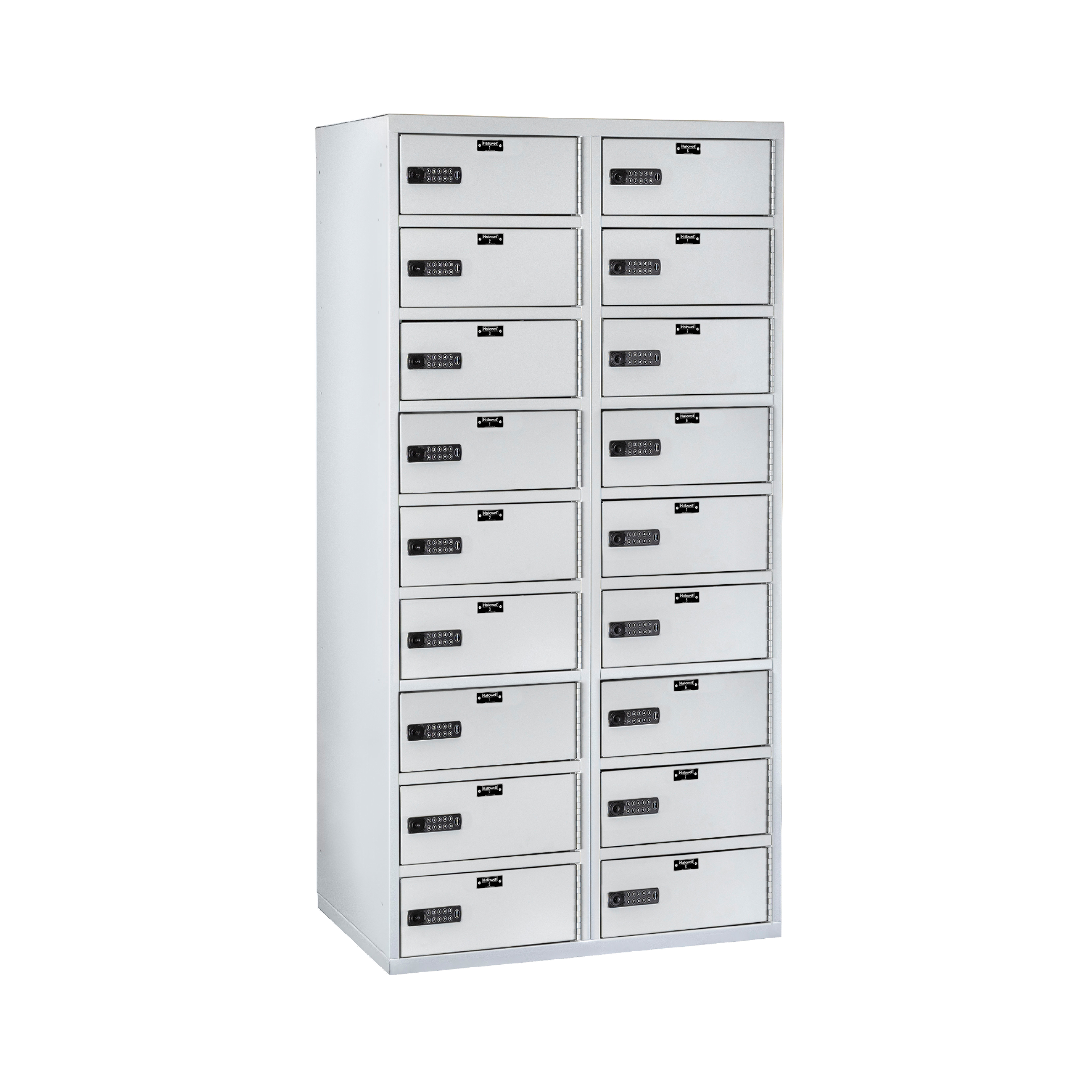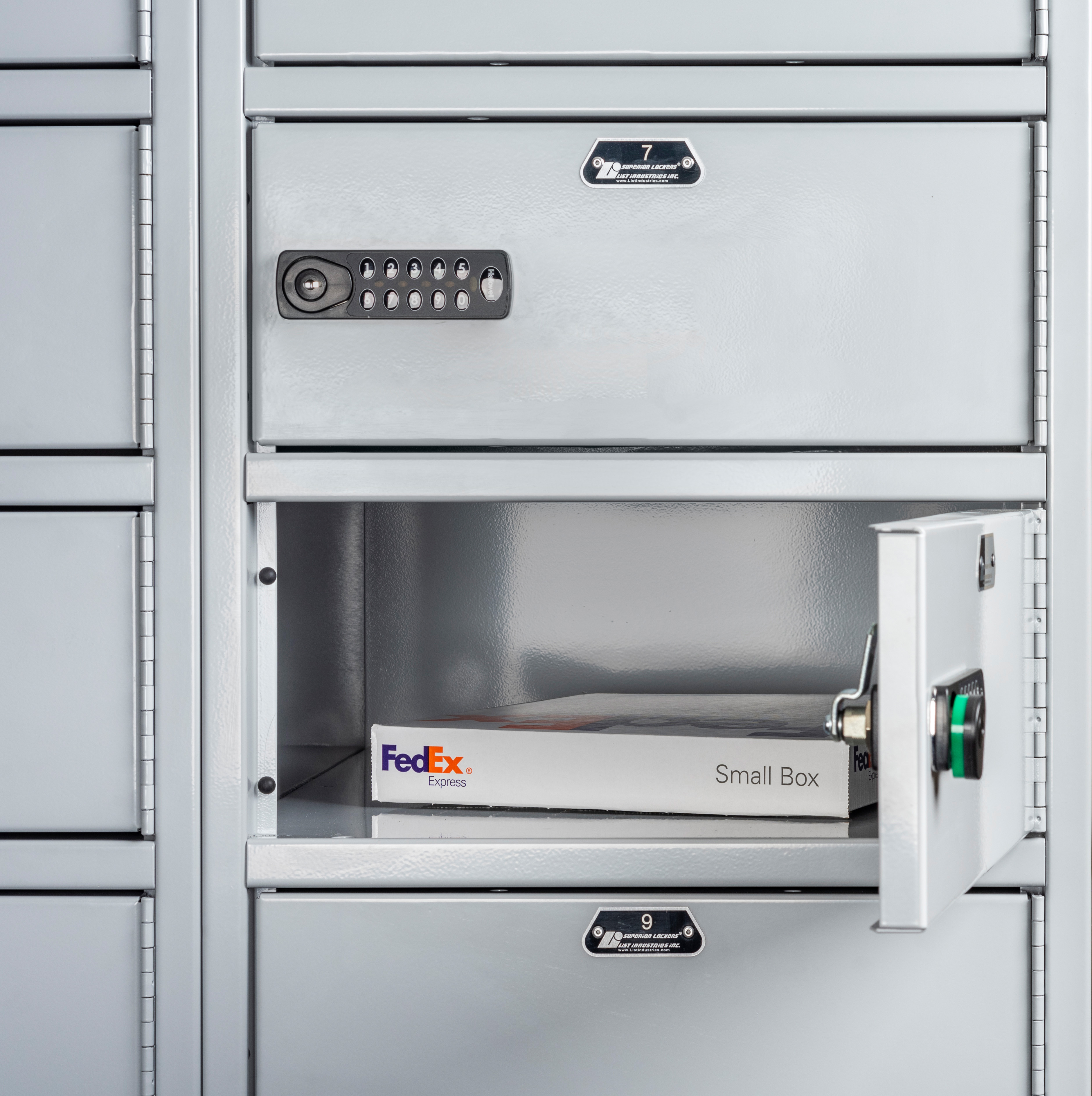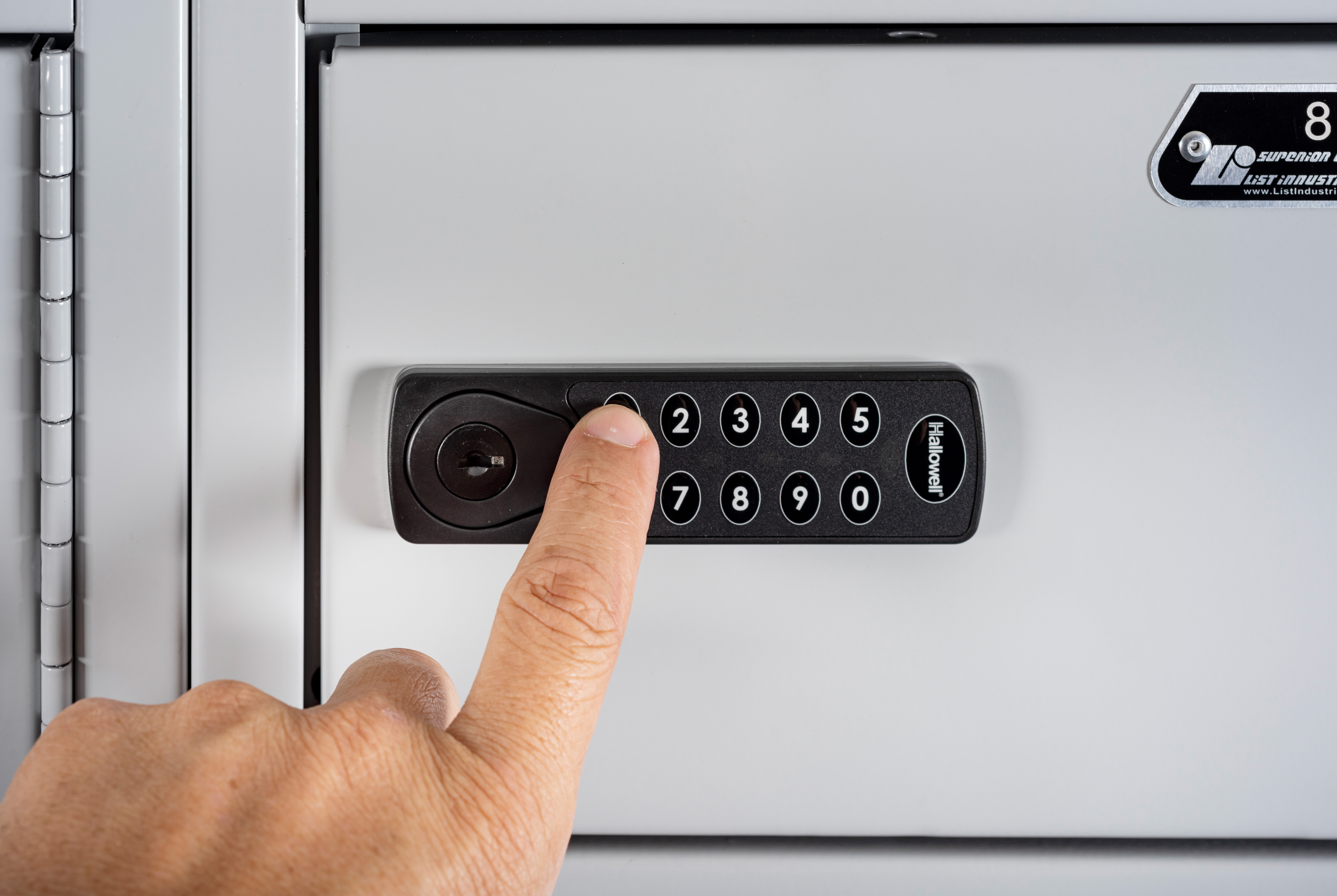 The built-in electronic keypad allows a user to type in their code to open the locker. The code can be changed for the next user. The locker can be opened when the battery is low or dead with a mechanical master key override.