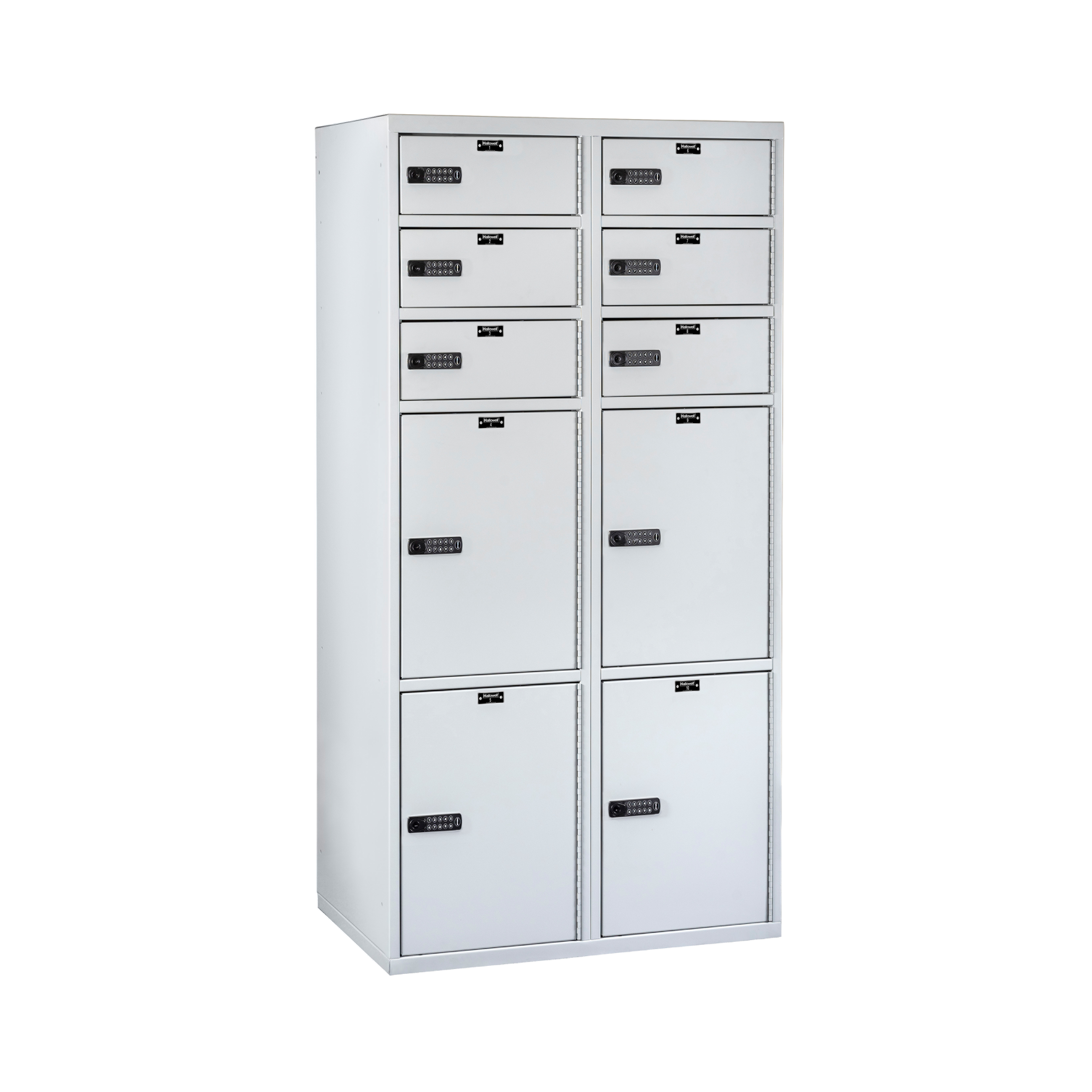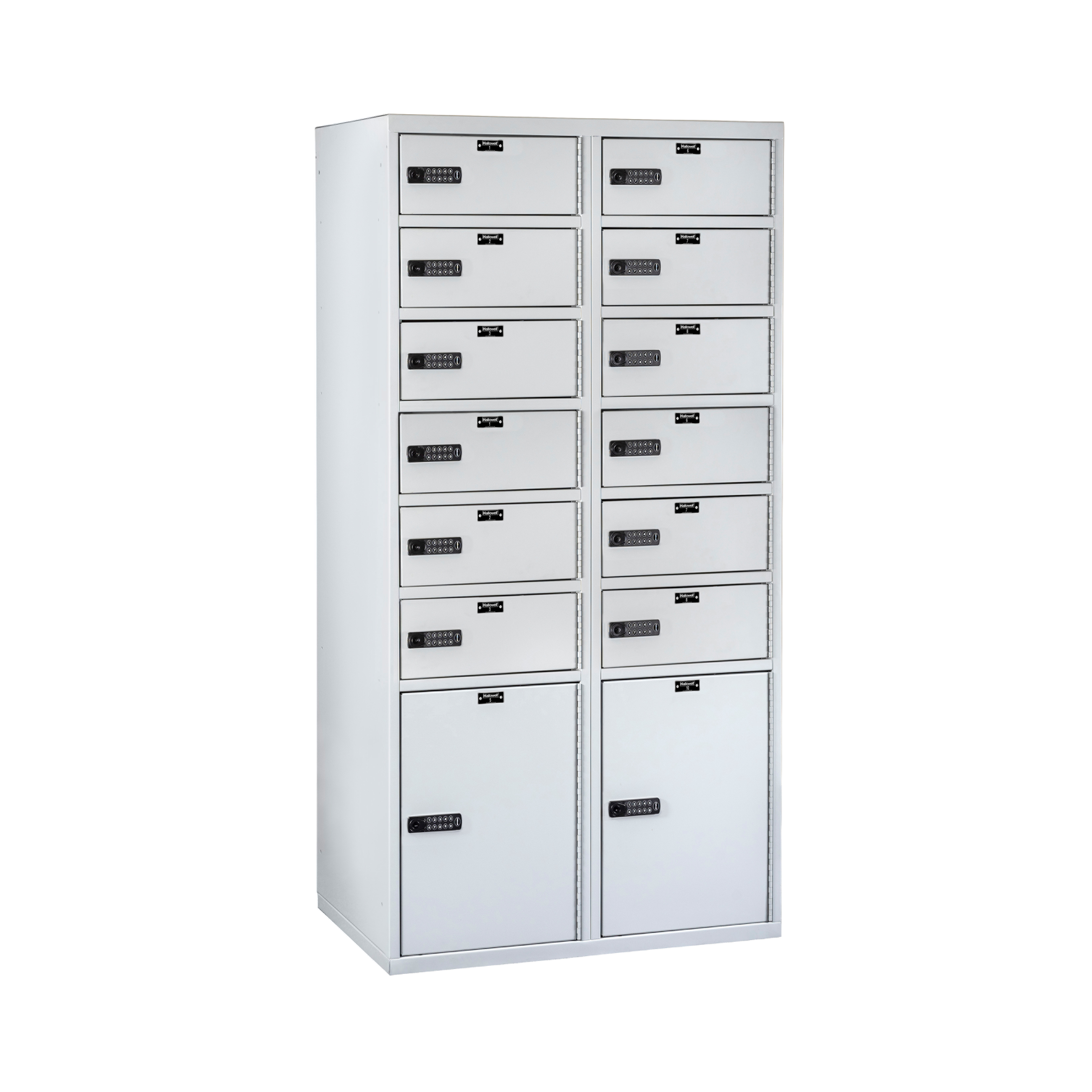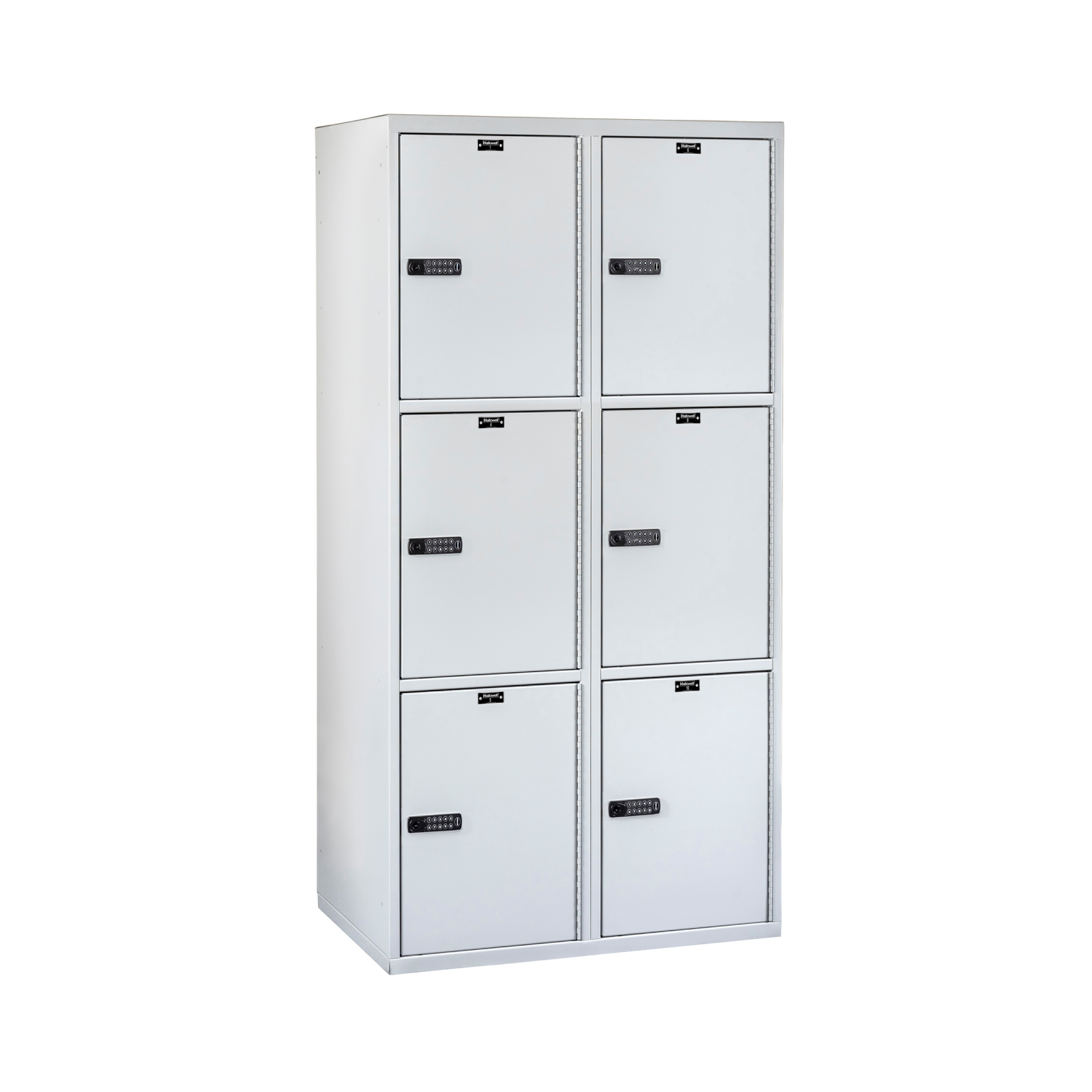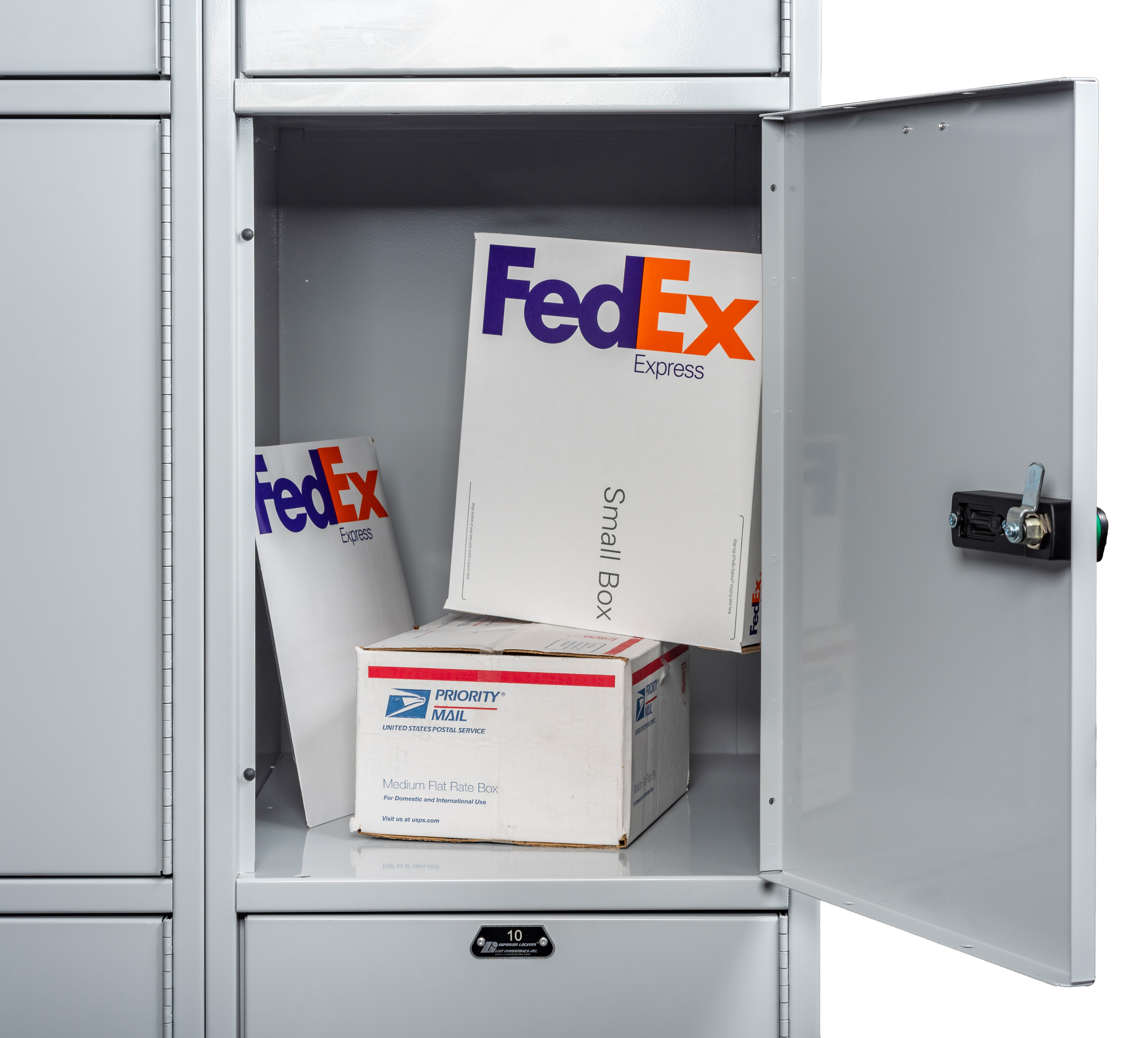 The built-in electronic keypad allows a user to type in their code to open the locker. The code can be changed for the next user. The locker can be opened when the battery is low or dead with a mechanical master key override.