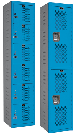 Athletic-type lockers use diamond perforated doors and sides to ensure proper ventilation.