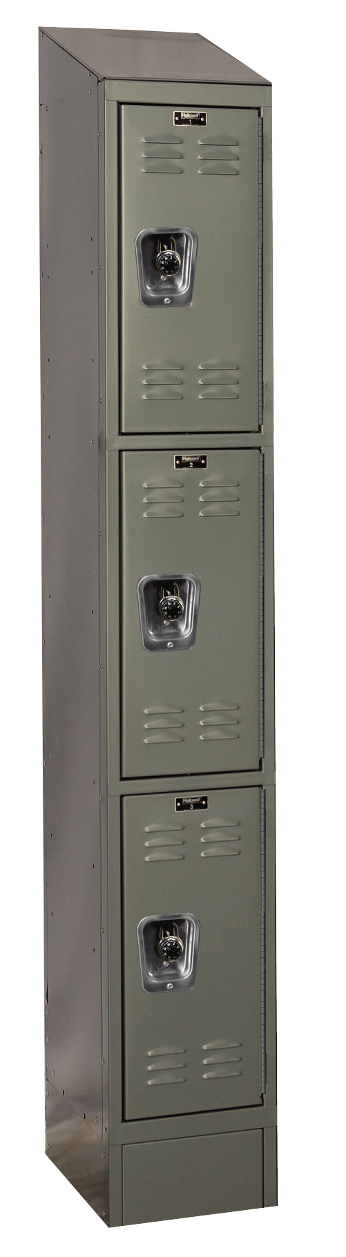 The Readybuilt II lockers have sloped tops keep dust from settling and prevents storing anything on top of the lockers and the closed metal bases eliminate the need to clean beneath the lockers. The doors have louvers for ventilation, full-length piano hinges to prevent pinched fingers, Six tier include aluminum strike plates to protect the painted door finish from padlocks.