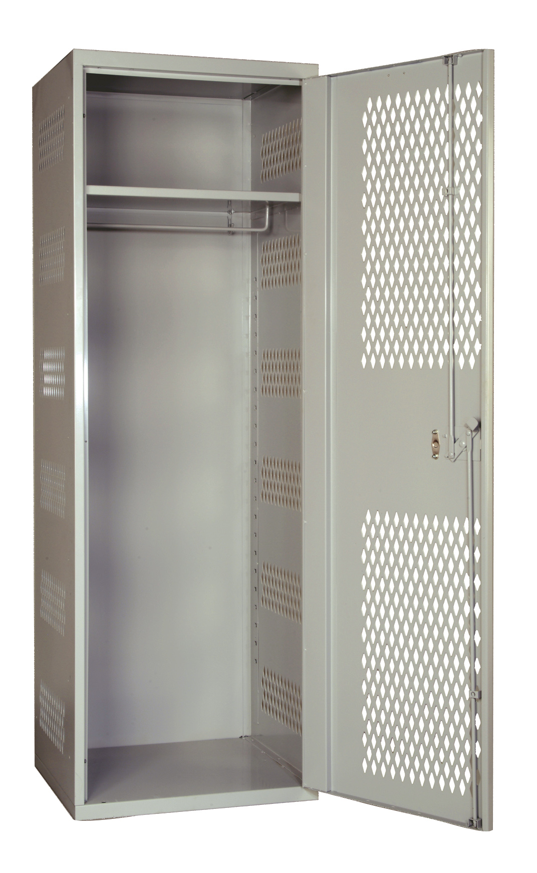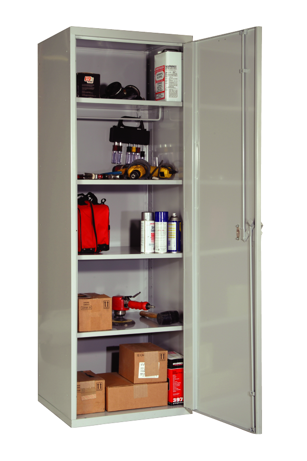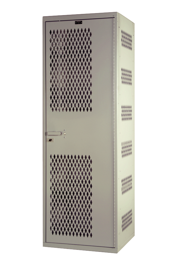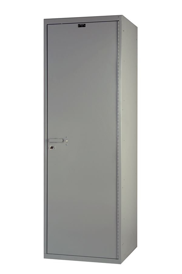 3-point turn handle locking using 3/8" diameter locking rods operated by a 3/16" gauge steel handle (handle painted to match unit)
