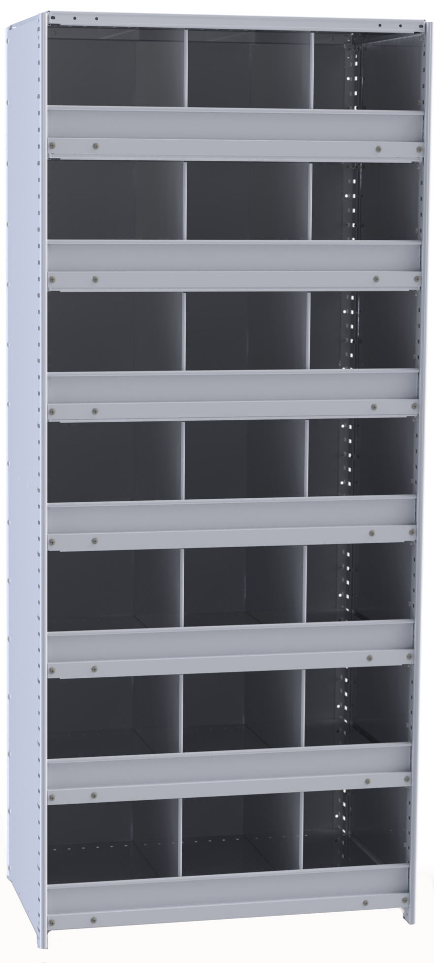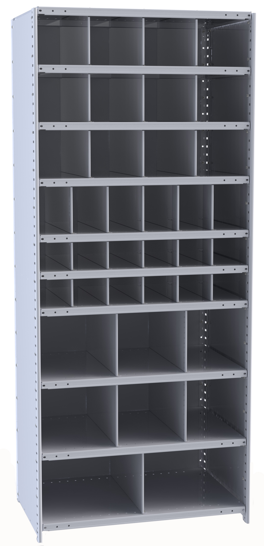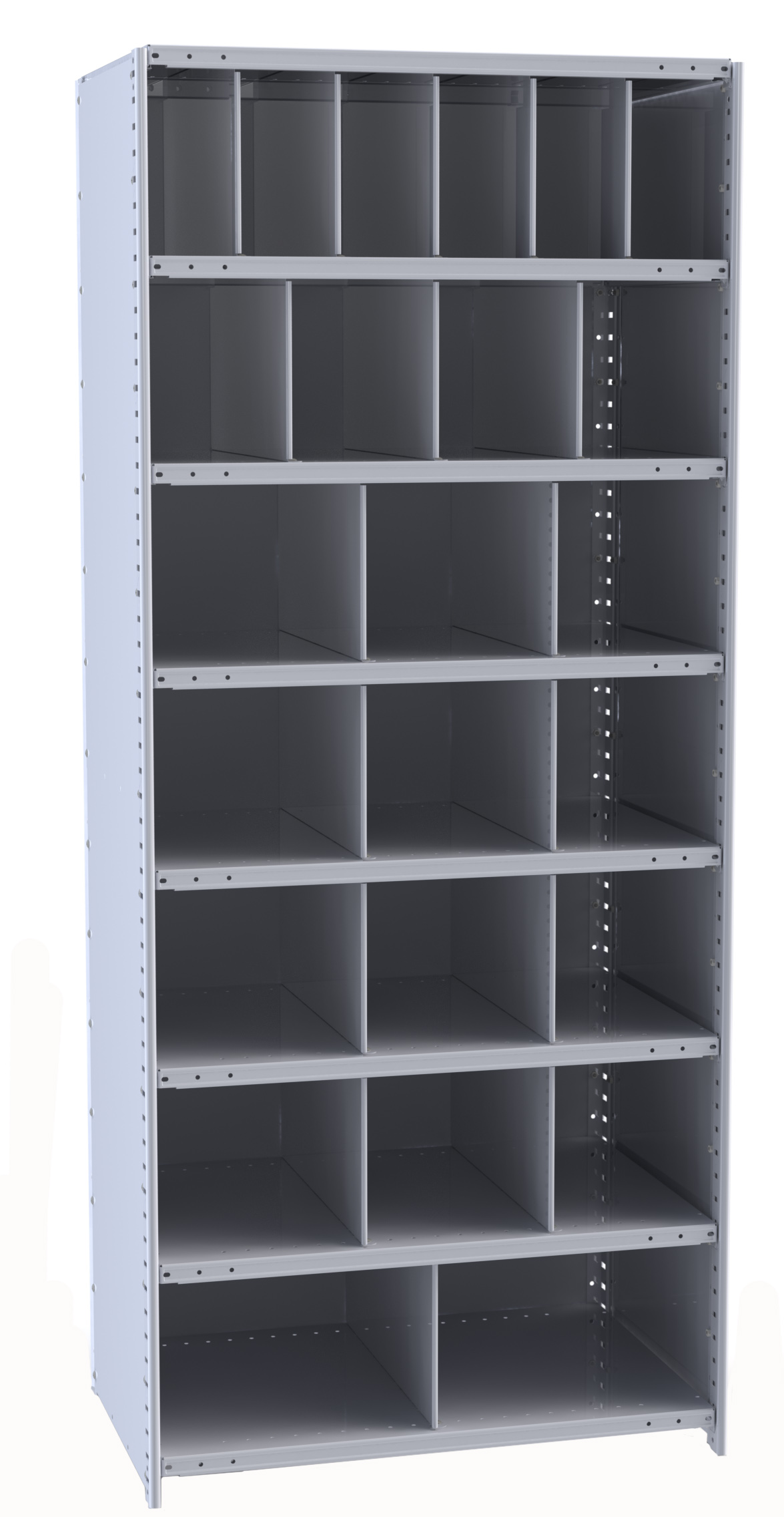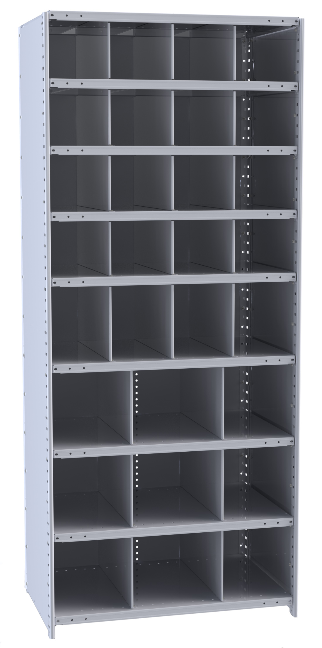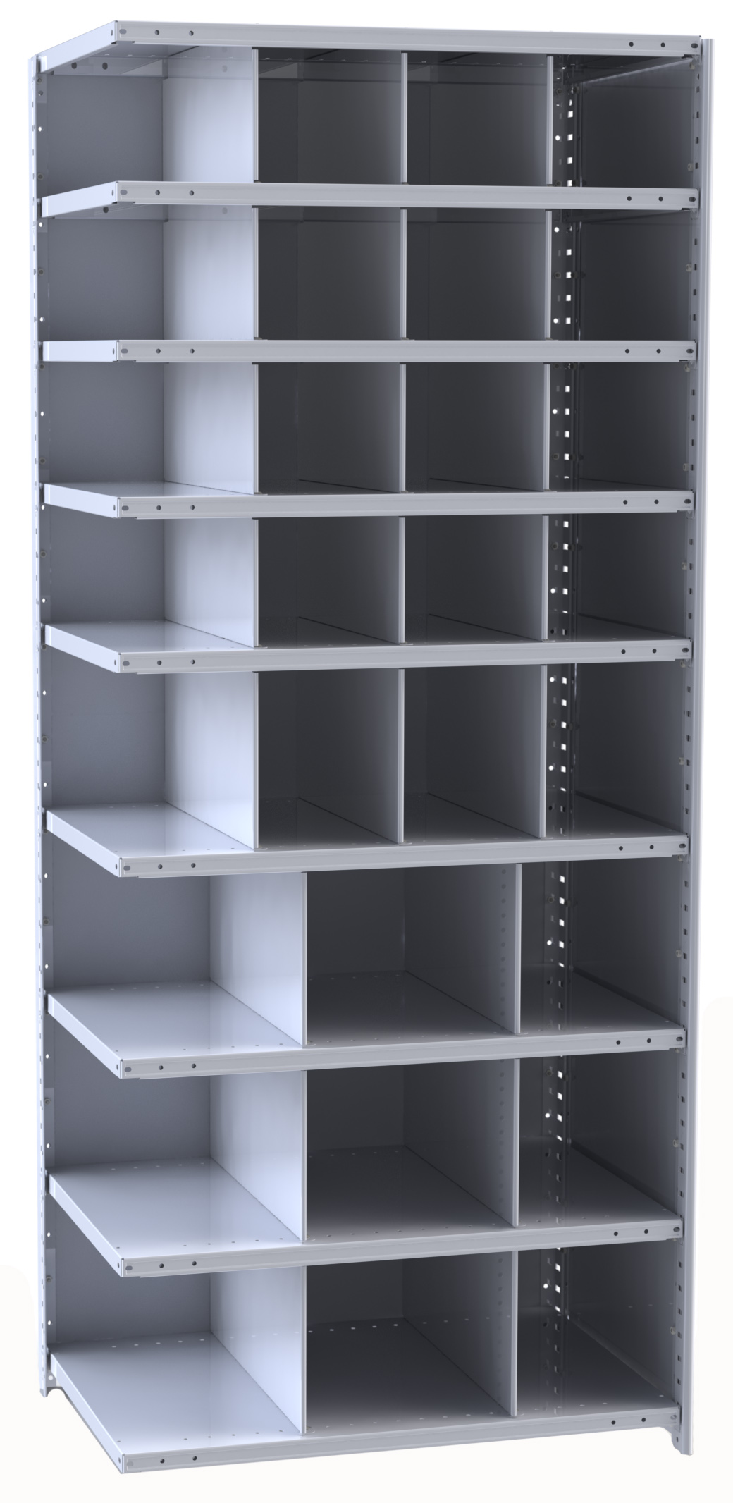 True flush construction. Slotted on 1-1/2" centers for easy shelf adjustment. Splice multiple posts for additional height.