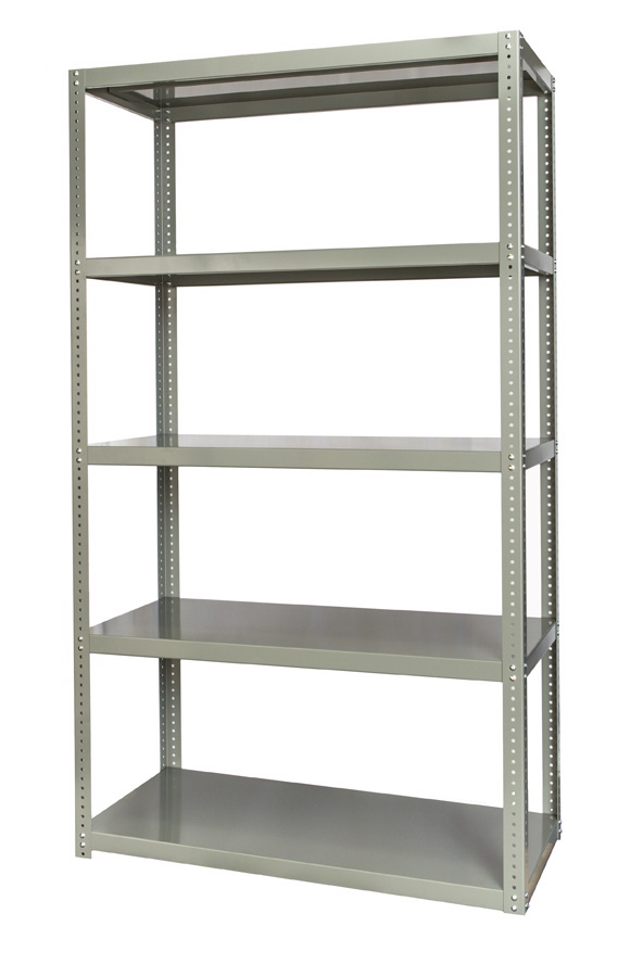 Product OverviewHigh-Capacity Reinforced Bolted ShelvingHigh Capacity Die Rack has 14 gauge cold rolled steel and double flanged at all four side with an18 gauge hat channel shape stiffener which holds up to 2,800 lb. per shelf (Based on evenly distributed loads) Features: Shelves adjust in 1” increments 5 shelf levels • Nut and bolt assembly Holds up to 2,800 lb. per shelf (Based on evenly distributed loads) Dark Gray powder coat finish Shelves are reinforced to prevent deflection under heavy loading Angle Post: Are 13 gauge cold rolled steel 2" x 2" corner post uprights punched on 1” centers for adjusting shelves High Capacity Shelves: Are 14 gauge cold rolled steel and double flanged at all four sides. All four corners are punched to allow shelves to be securely bolted to angle posts. Minimum four nuts and bolts per corner. Shelf Stiffener: An 18 gauge hat channel shape stiffener is welded to the underside of the shelf running left to right increasing capacity and preventing deflection under heavy loading. Catalog High Capacity Shelving Bolted Shelving SKU Width Depth Frame Height Shelf Capacity Assembled HCS361884-5HG 36 18 84 2800 KD HCS481884-5HG 48 18 84 2600 KD HCS482484-5HG 48 24 84 2500 KD HCS602484-5HG 60 24 84 2300 KD HCS722484-5HG 72 24 84 2000 KD Colors Color Selection: #7a918b 725 Dark Gray (HG) DocumentsSimple Specification: High Capacity Bolted Shelving Specifications DOC High Capacity Bolted Shelving Specifications PDFAssembly Instructions: Assembly Instructions