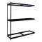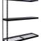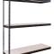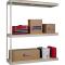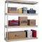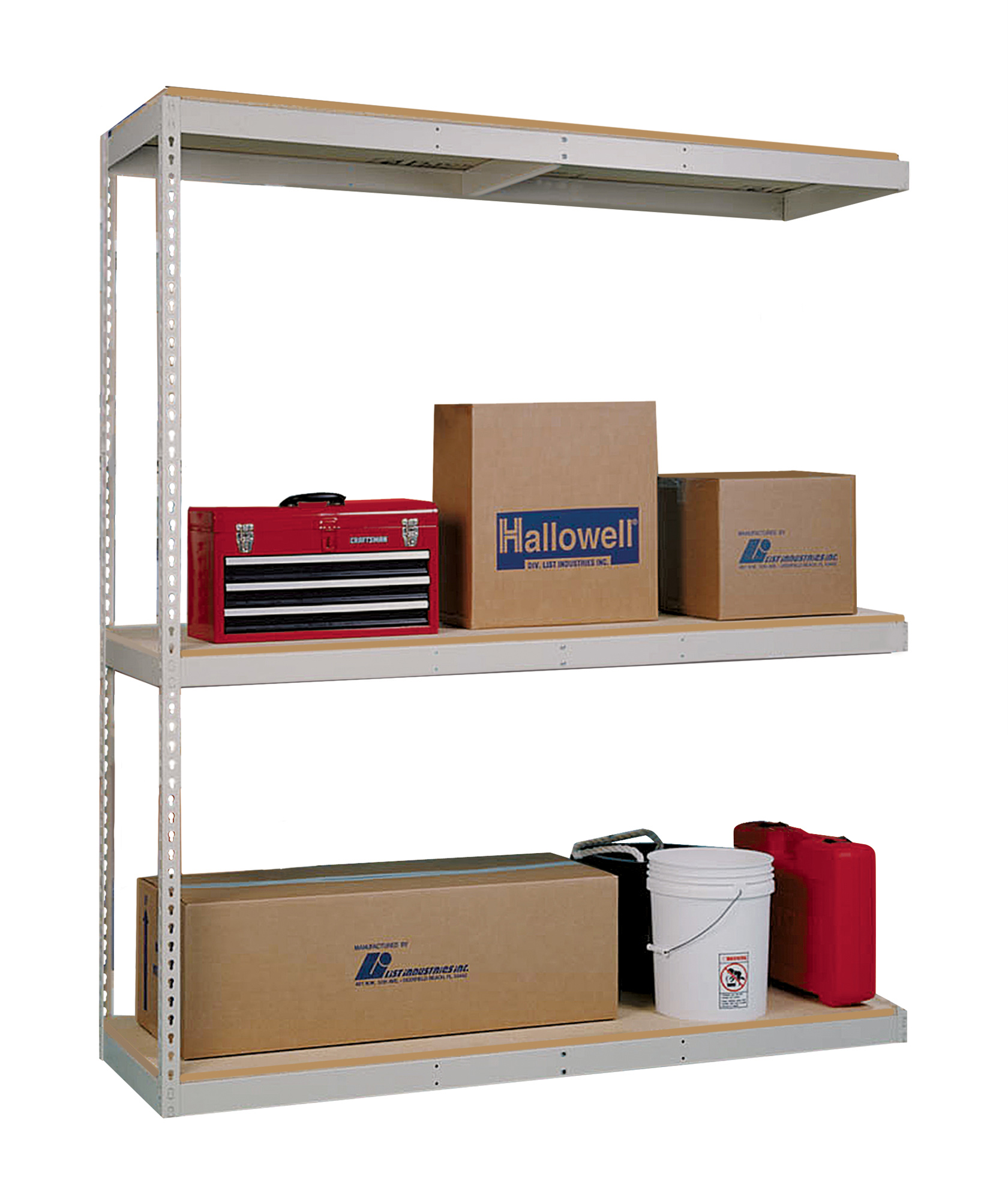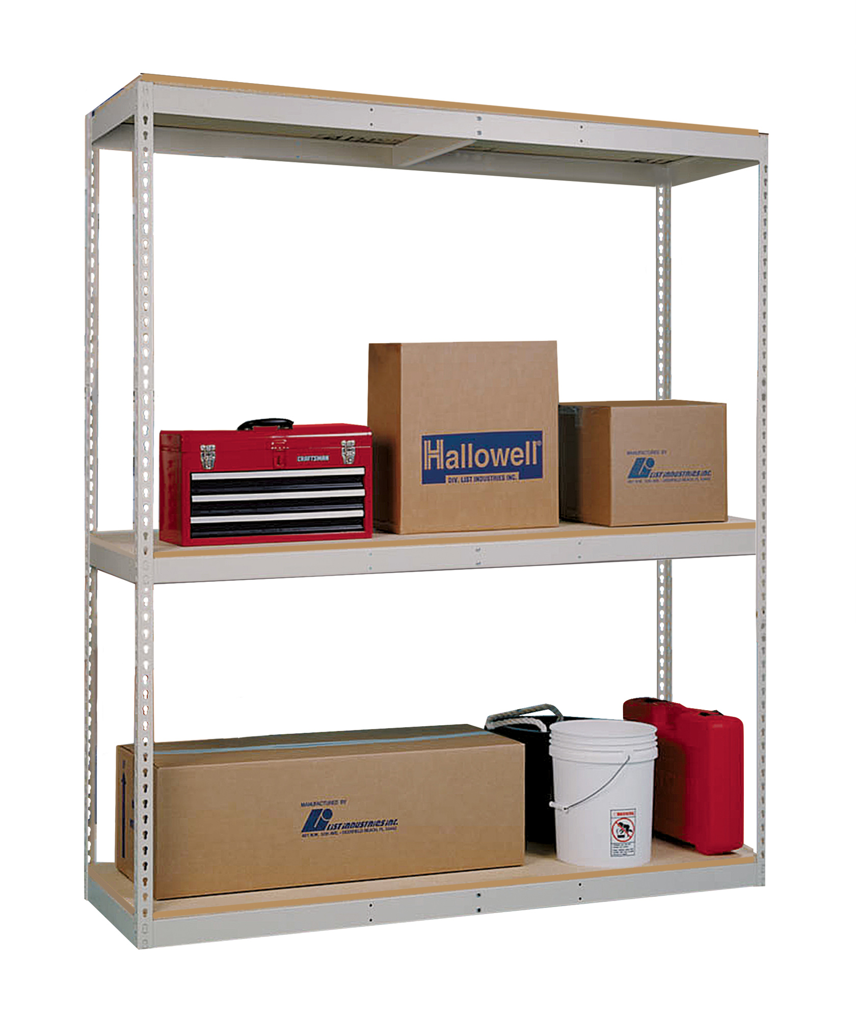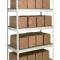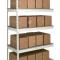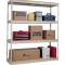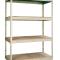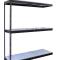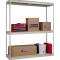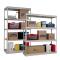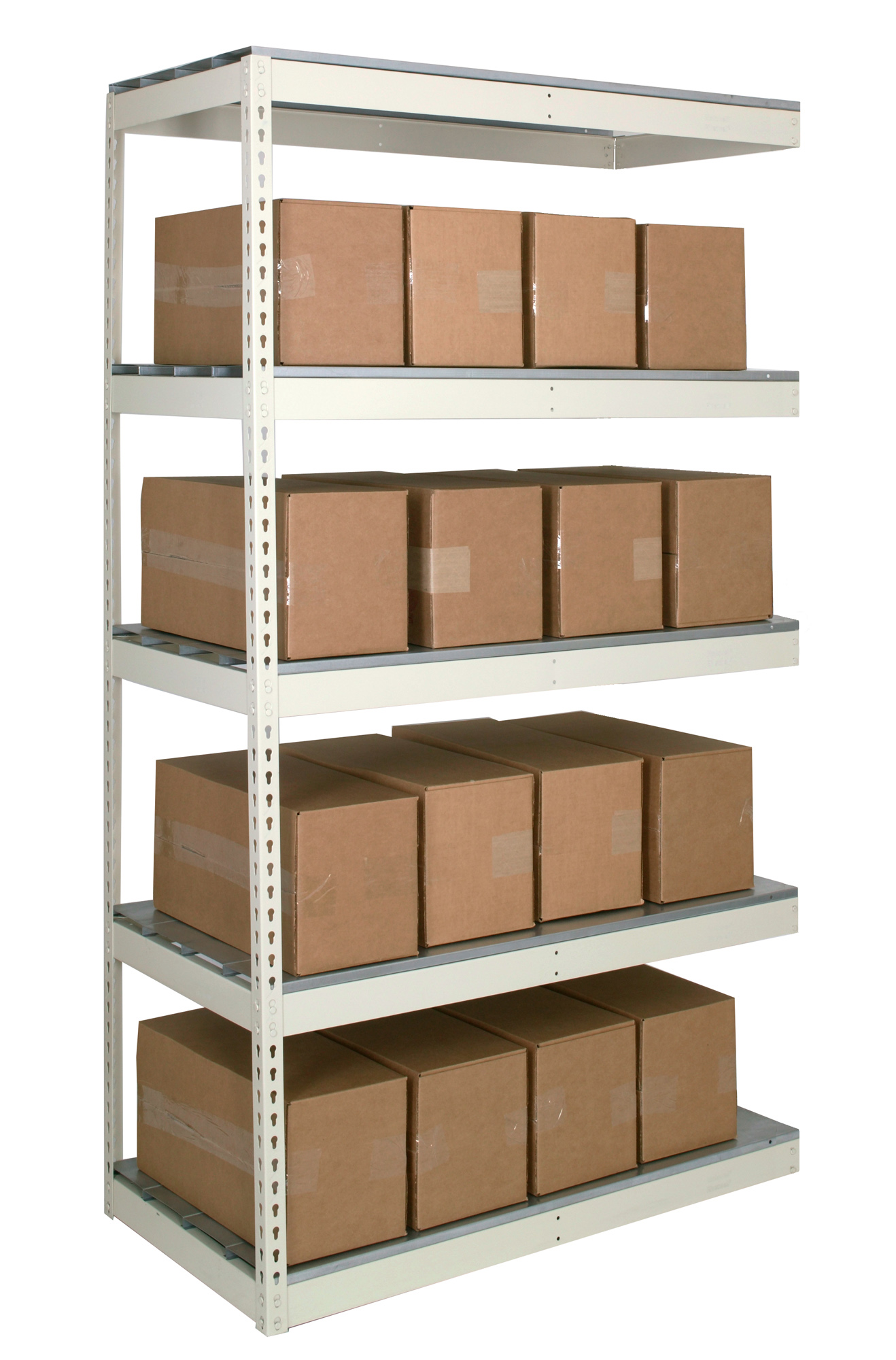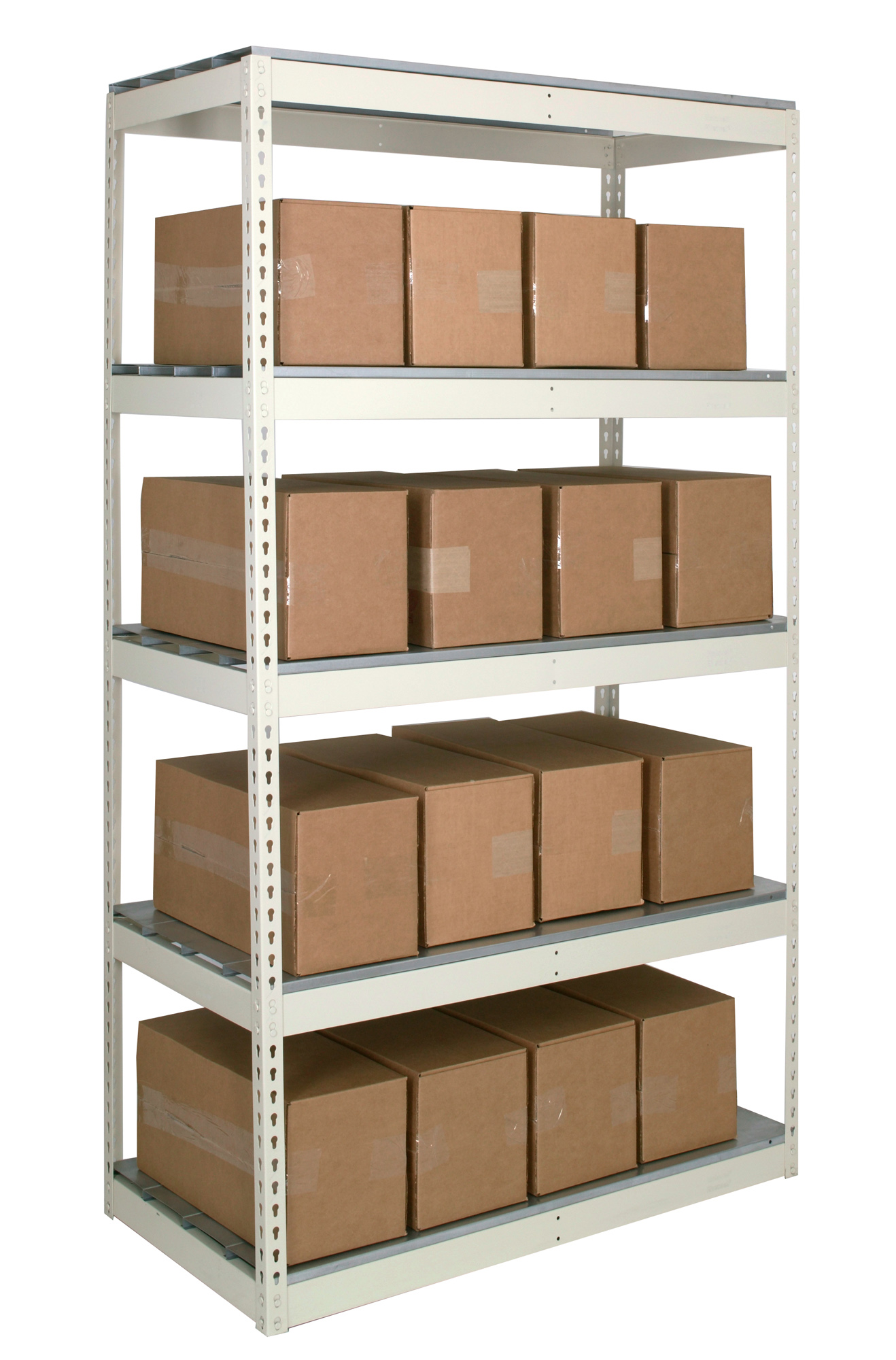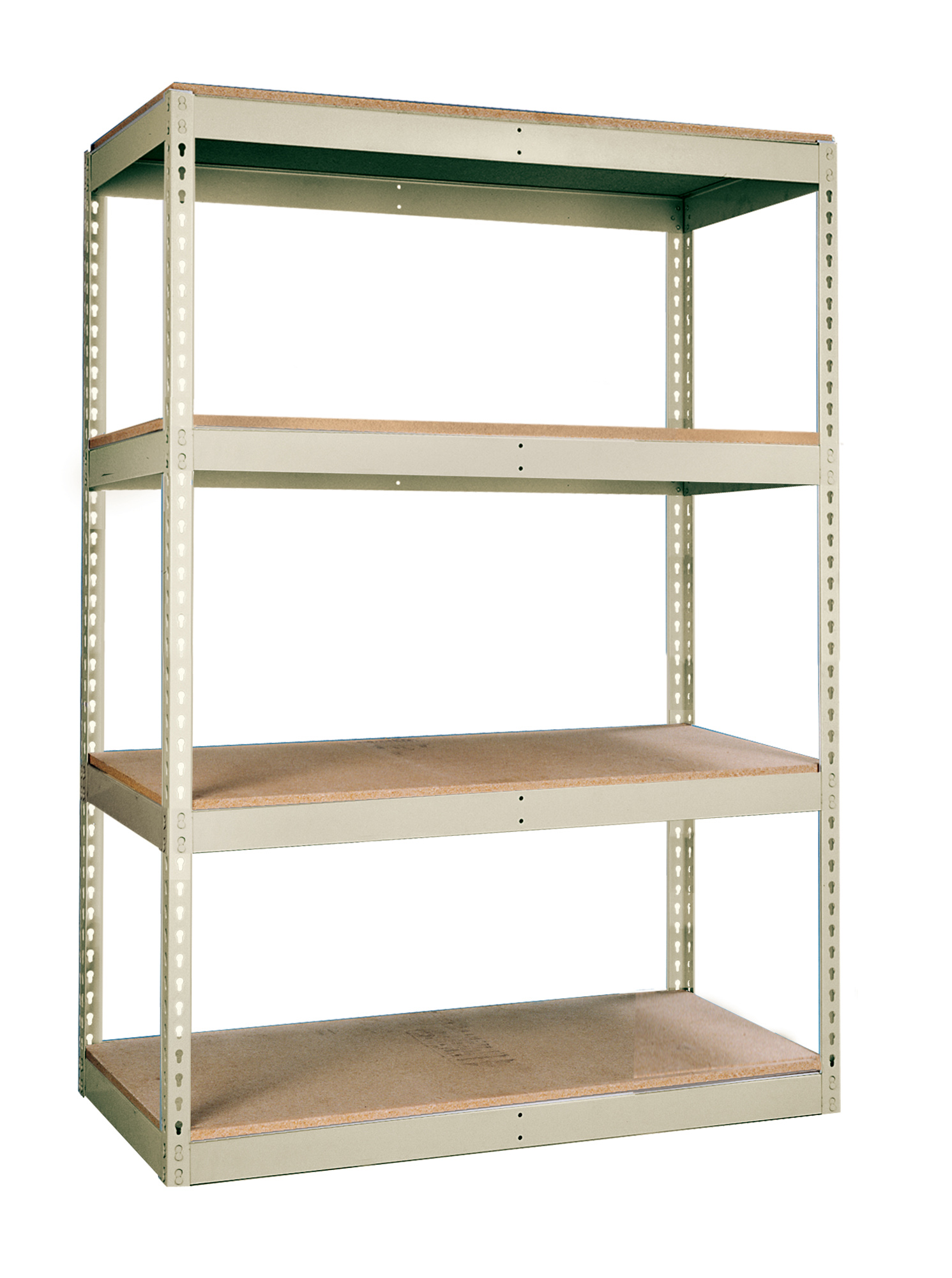 Shelf strength can be increased by adding single rivet beam or double rivet angle beam or double rivet channel beams beams running front-to-back at the intermediate levels.