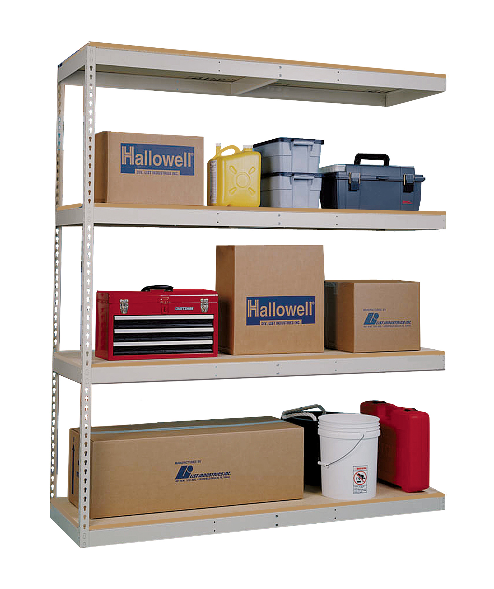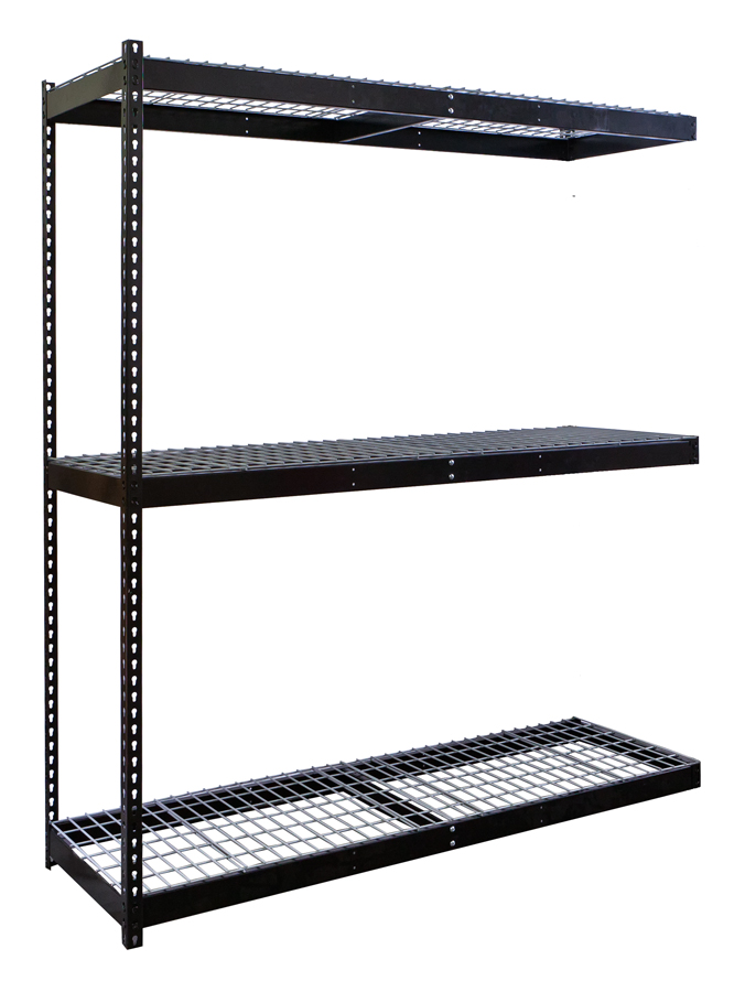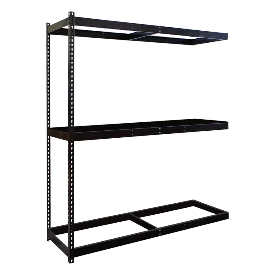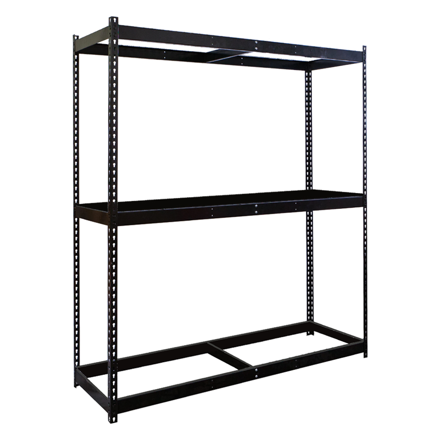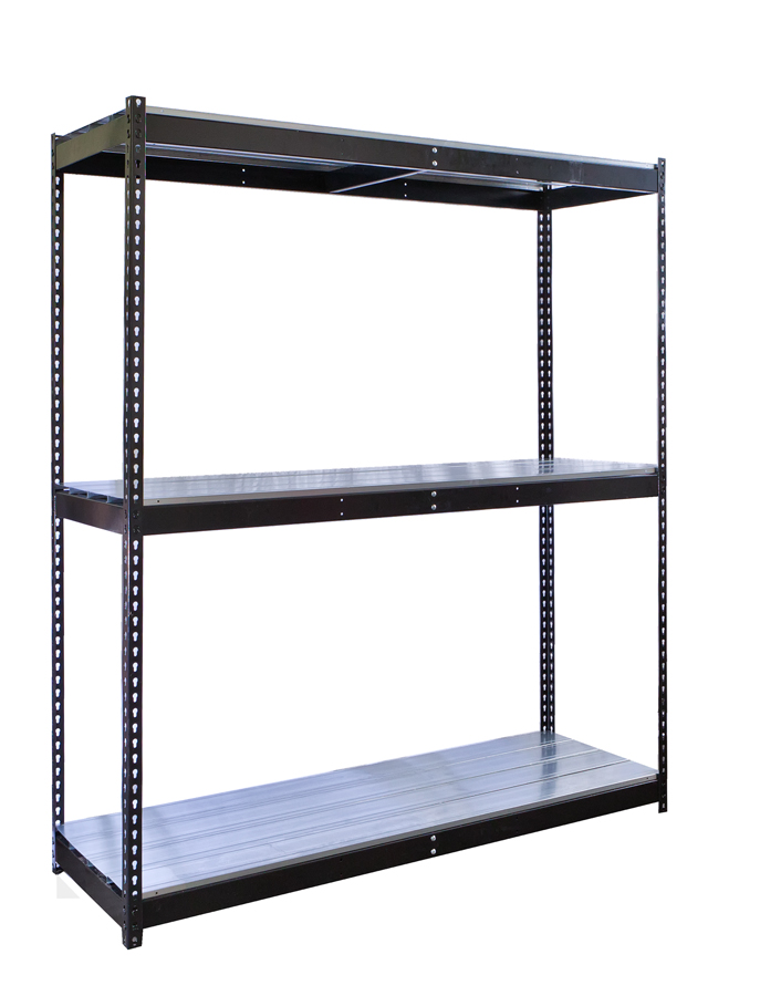 Boltless shelving is a type of shelving that is designed to be easy to assemble and disassemble. It is made up of a series of vertical posts and horizontal beams that are connected by rivets. The rivets align with keyhole slots in the vertical posts. Once tapped into place using a standard rubber mallet, the units are tightly assembled to provide maximum strength.