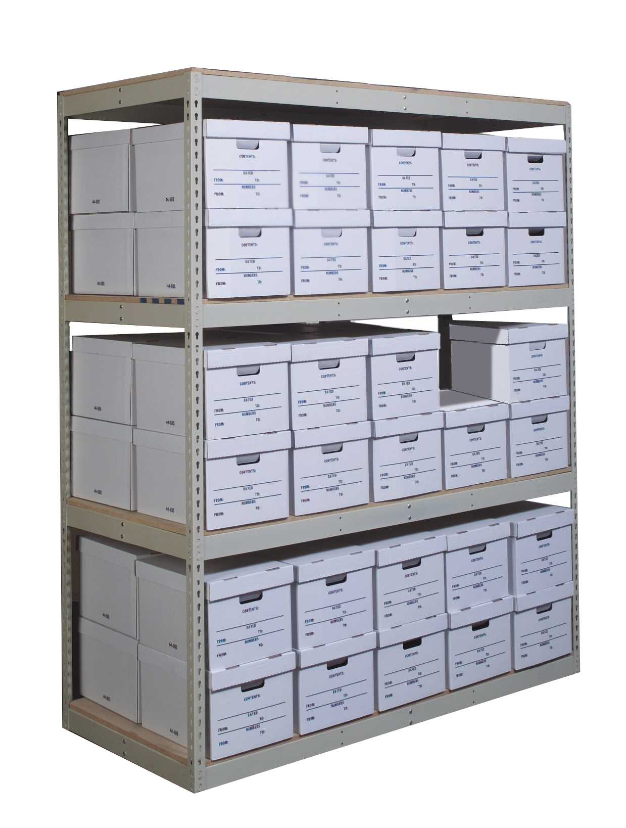 Boltless shelving is designed to maximize storage space and minimize installation set-up time.