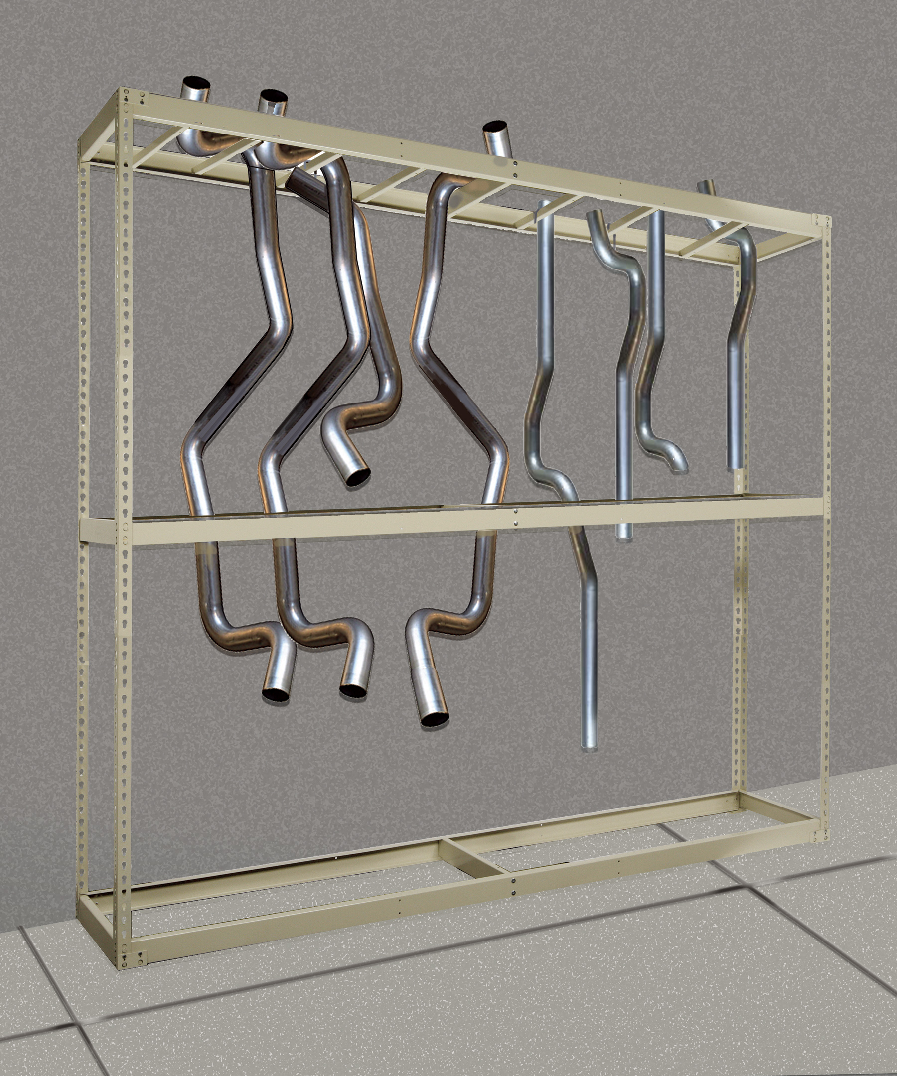 Your choice of shelving: Standard 5/8" particleboard, EZ-Deck steel, or wire decking. Shelf strength can be increased by upgrading to heavy duty beams, adding single rivet beams running front-to-back at the intermediate levels, upgrading to double rivet beams at the full perimeter of the intermediate levels, or upgrading all levels to our strongest double rivet channel beams.
